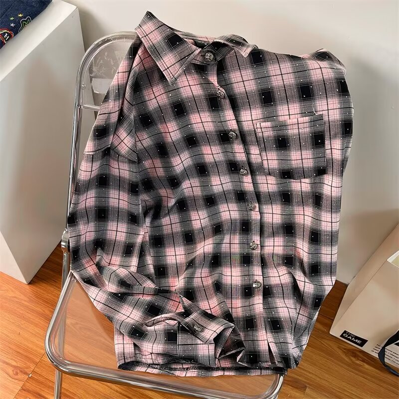 ドリルの格子の長袖のシャツのゆったりとした潮のブランドのごろつきのかっこいい日焼け止めのシャツの2024夏の復古のアメリカのレジャーのコート