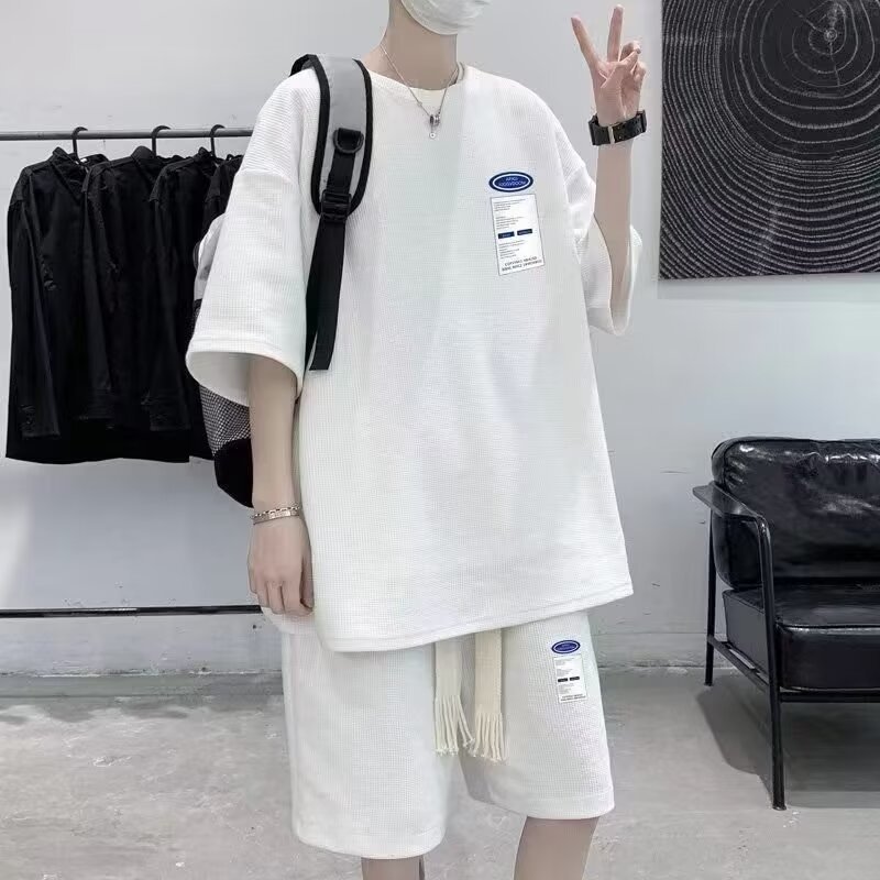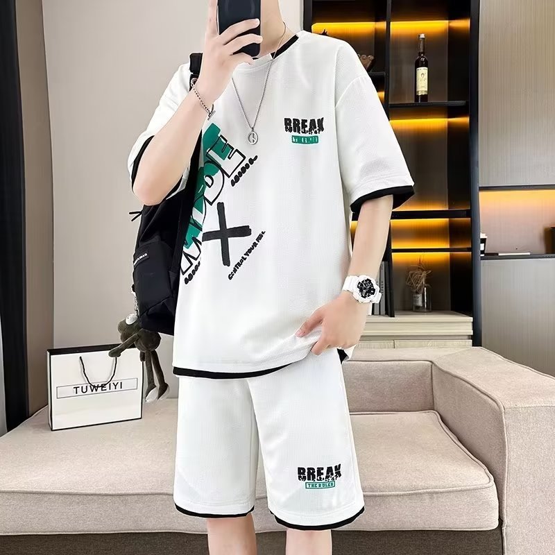 夏の薄手スポーツ半袖tシャツメンズ韓国版トレンドゆるい夏服薄手5分丈パンツスポーツパンツスーツ
