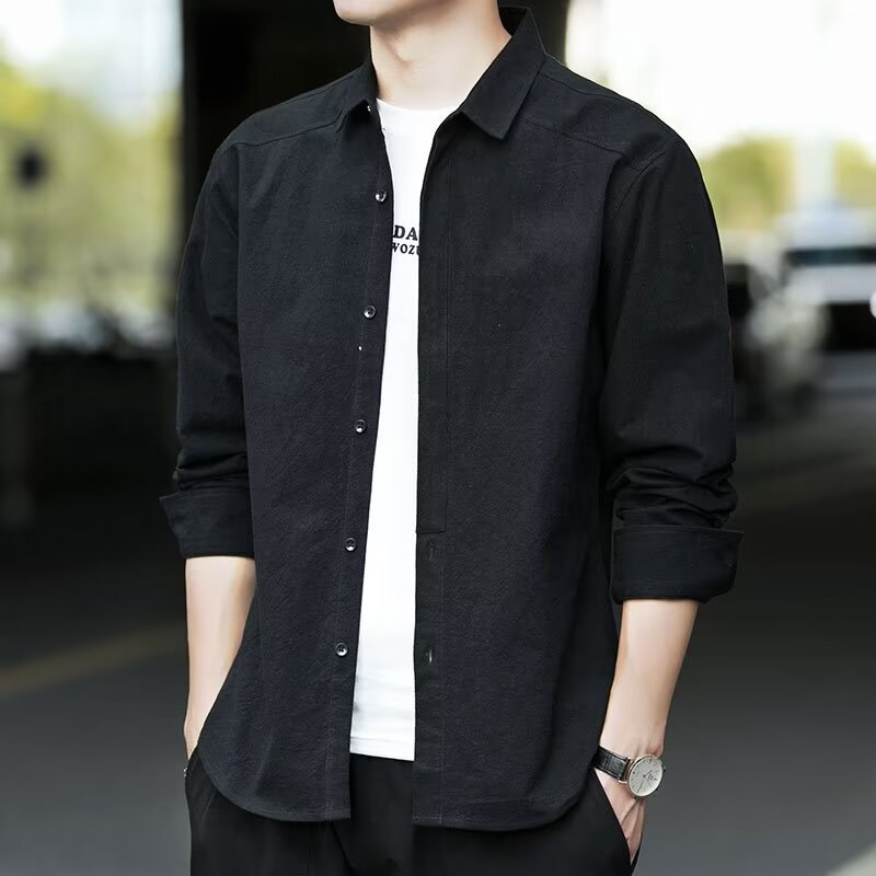 アイス長袖シャツ男性春韓国風シャツカジュアル日本式ゆったり大きいサイズ長袖インチシャツ