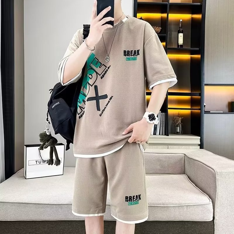 夏服レジャースポーツ半袖半ズボン2点セット薄いファッションスーツ男性ファッションブランド男性かっこいいセット