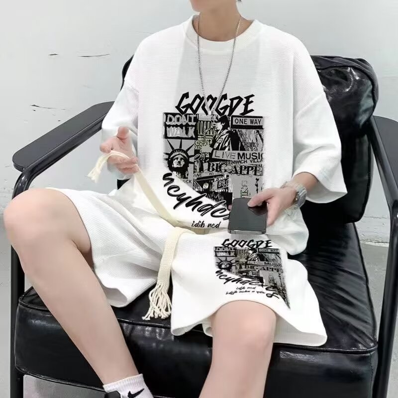 半袖半ズボンセット男性韓国版トレンド2024新夏スポーツパンツ五分男服カジュアルtシャツ
