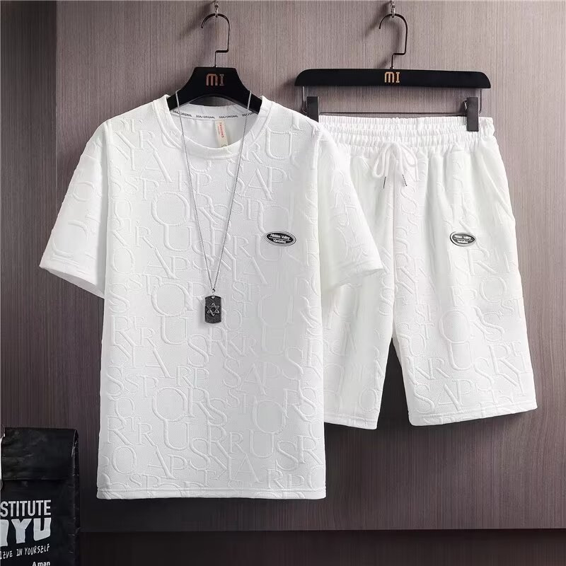 2024新型夏の薄い半袖tシャツ男性韓国版ファッション高級感2枚入り夏のスポーツパンツ