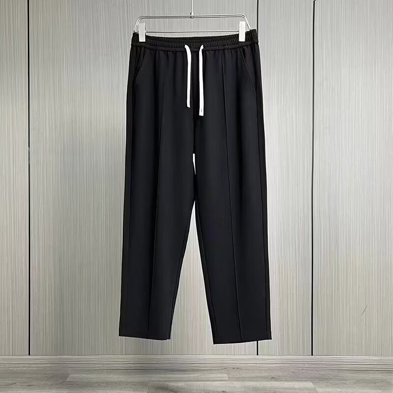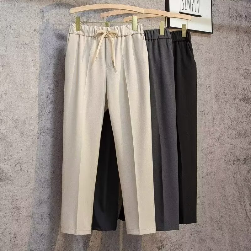 スーツのズボンの男性のひもは腰のまっすぐな筒のペンダント感のカジュアルなズボンの夏のファッションの高級感の9分のズボンの男性を締めます。