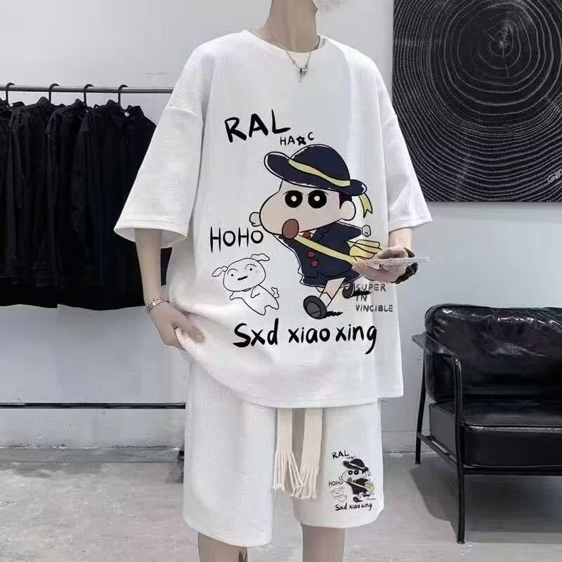 クレヨンしんちゃんプリント半袖tシャツ男ins潮牌2024新型上着夏運動学生半袖tシャツ