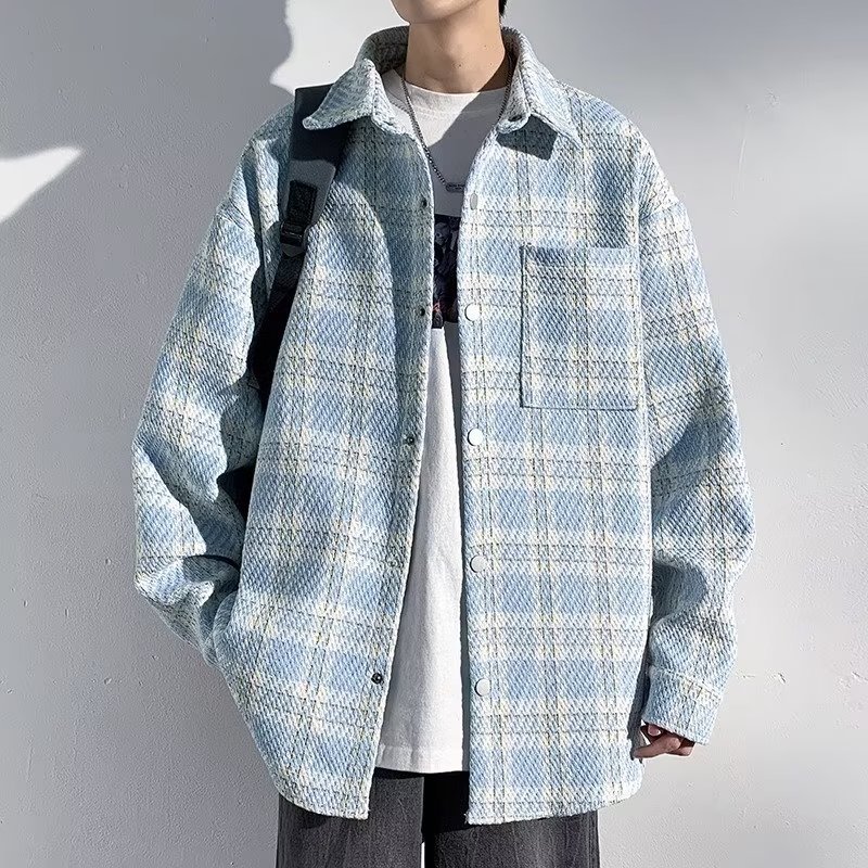 秋装男性用小香風コート春秋春レトロ高級感格子潮牌シャツ長袖痞帅ジャケット