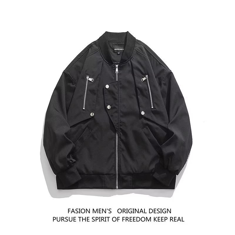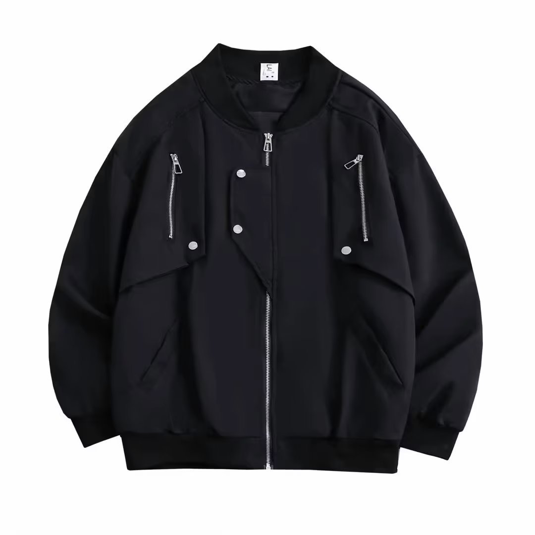 秋の黒色多ファスナーコート男性韓国版トレンドins百合高級感突撃服春秋タイプジャケット