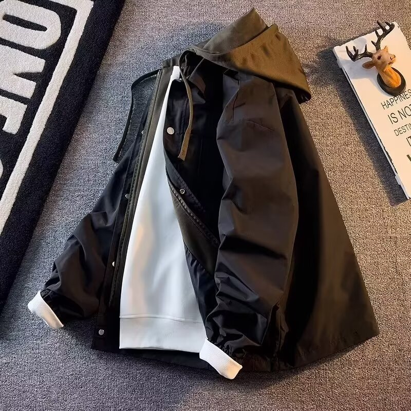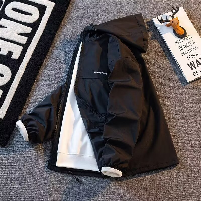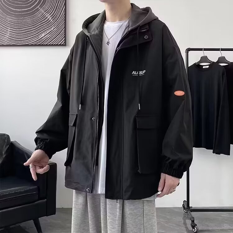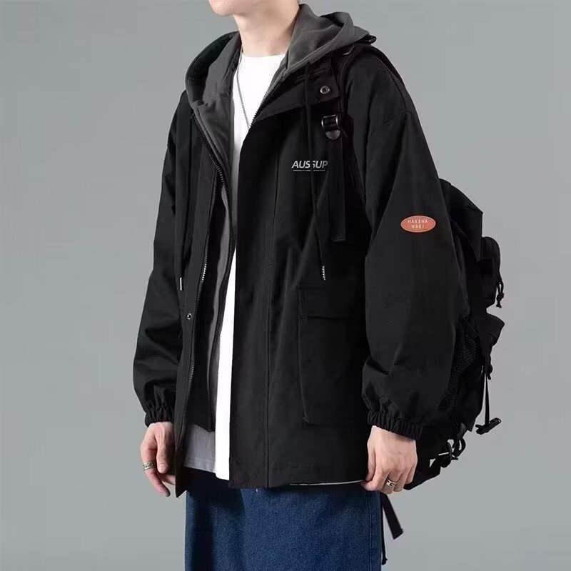 秋の帽子付きのジャケット男性韓国版のファッション登山服防風ジャケットアメリカ式ファッションブランドの学生服