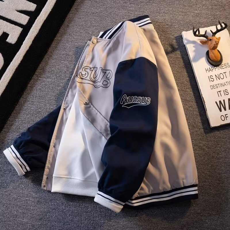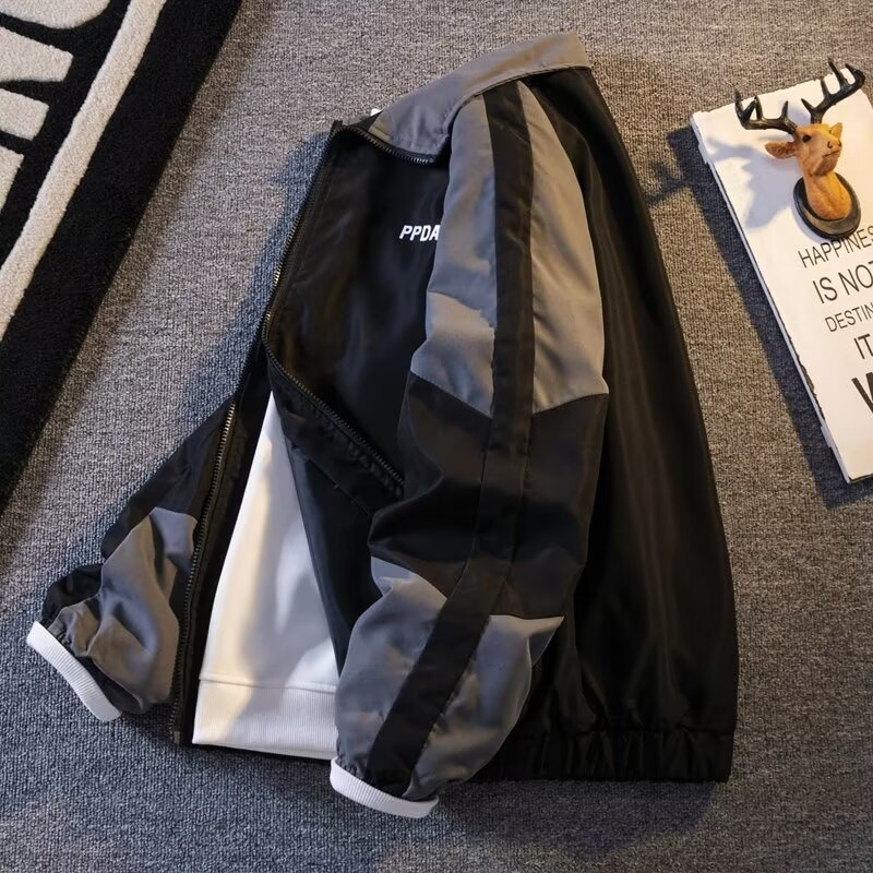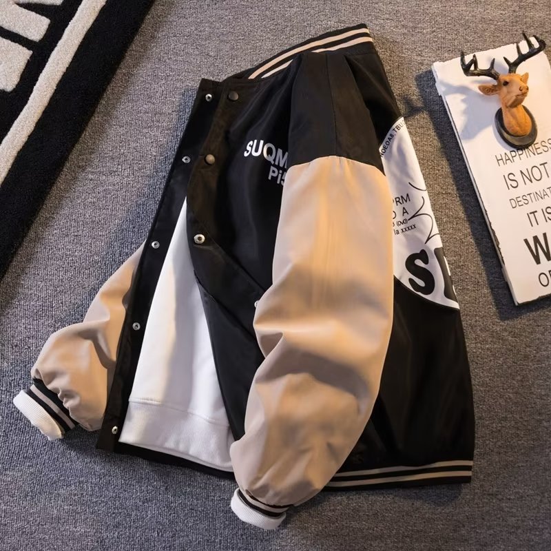 秋のカジュアルコート男性韓国版ファッション野球服の色合わせアメリカ風春秋モデルの新しいジャケット