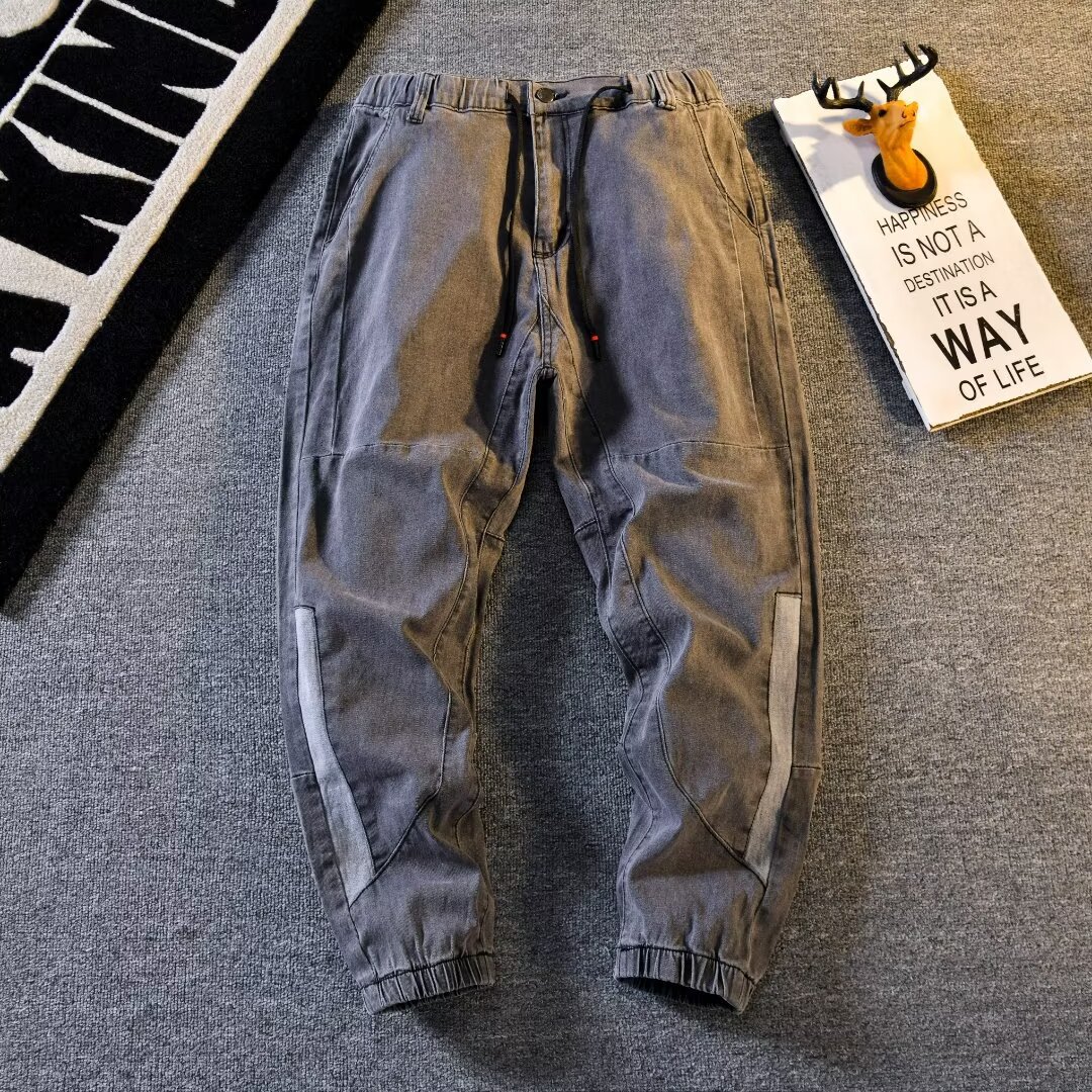 春秋復古九分ジーパン男性韓国版ファッション束足工装ズボン水洗い衝突色カジュアル男性ズボン