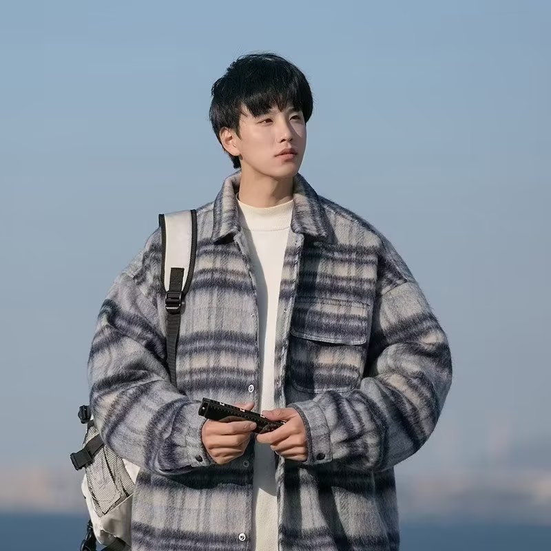 軽熟風千鳥格毛です。工装コート男性百合痞帥韓版青少年韓国版ファッションジャケット