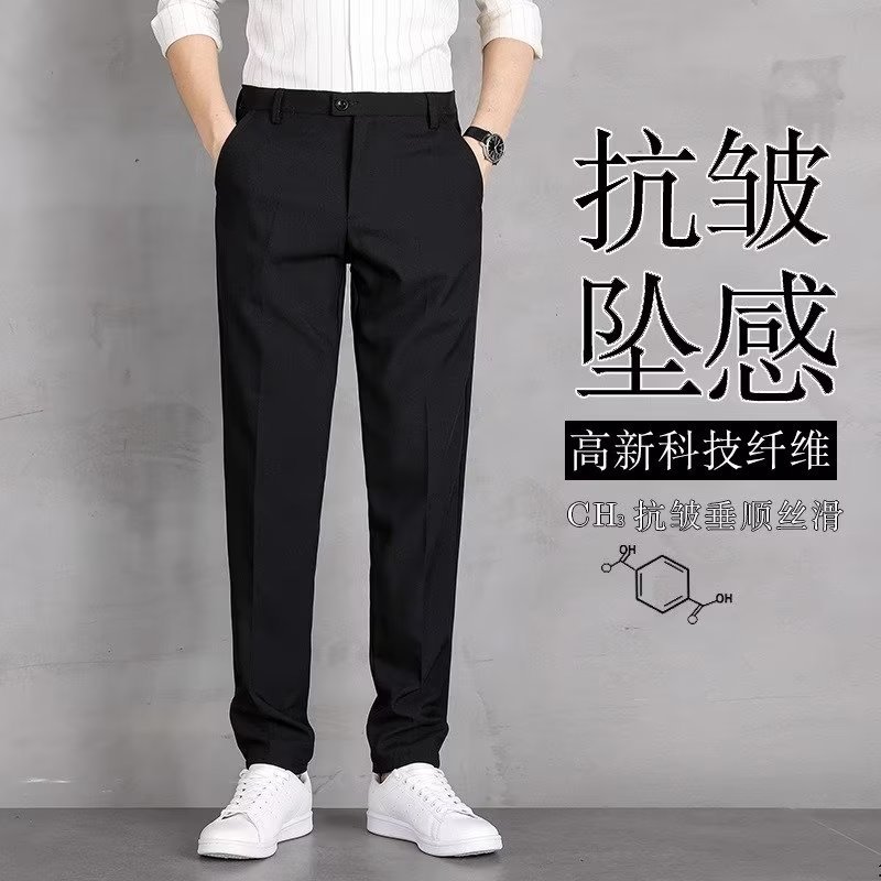 秋の黒いカジュアルなズボンの男性の韓国版のファッションのペンダント感の小さいスーツのズボンの小さい足のズボンのストレートな筒の春秋のタイプの男性のズボン