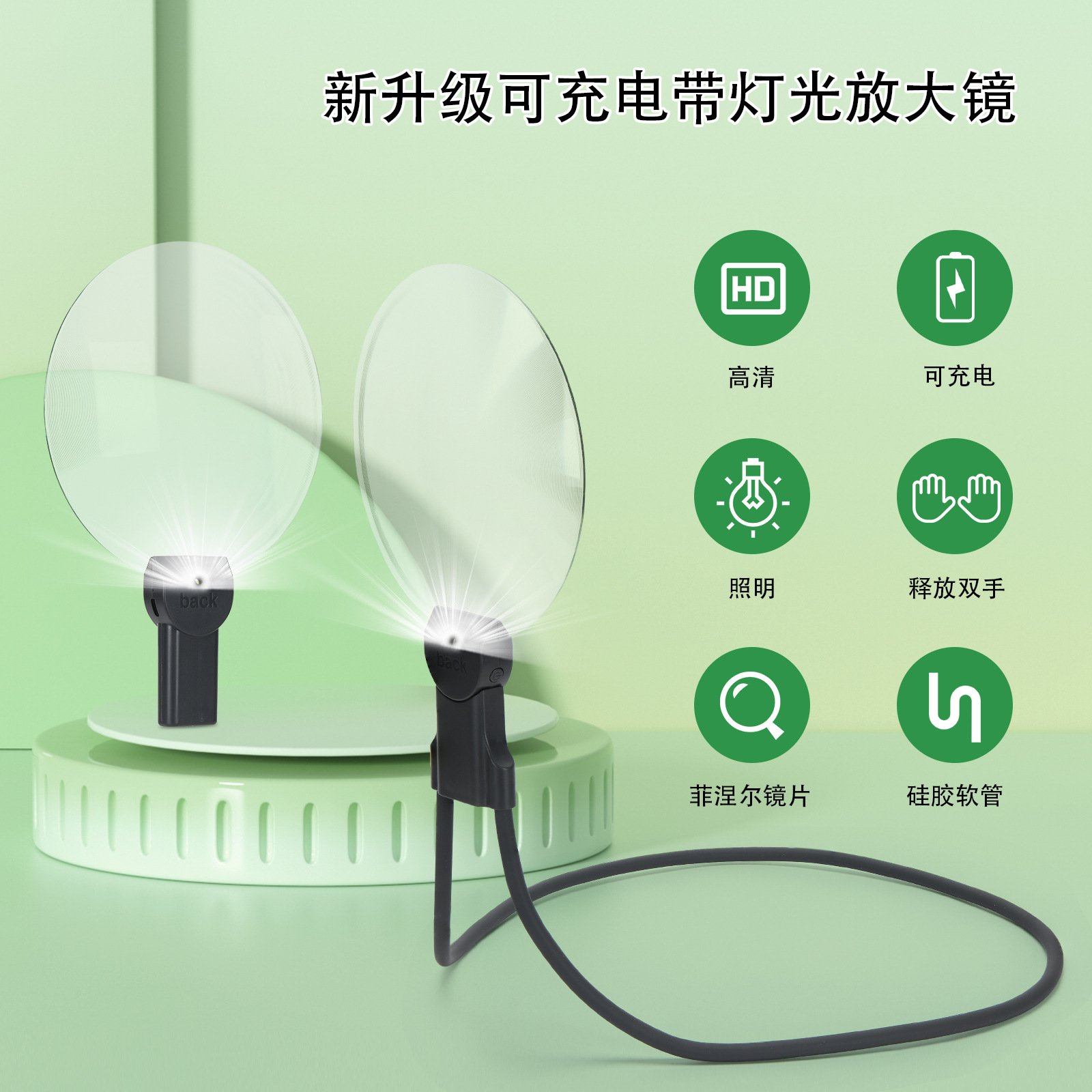 ライト付きの高精細な首掛けルーペ老人は本を読んで新聞を読む専用の手持ちの台の上のリーダーを持って充電することができます。