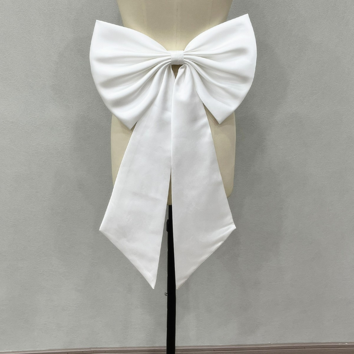 白い蝶結びのサテンのウェディングドレスの部品の尾の糸の長いタイプの結婚式の腰の装飾のシンプルな高級V1391