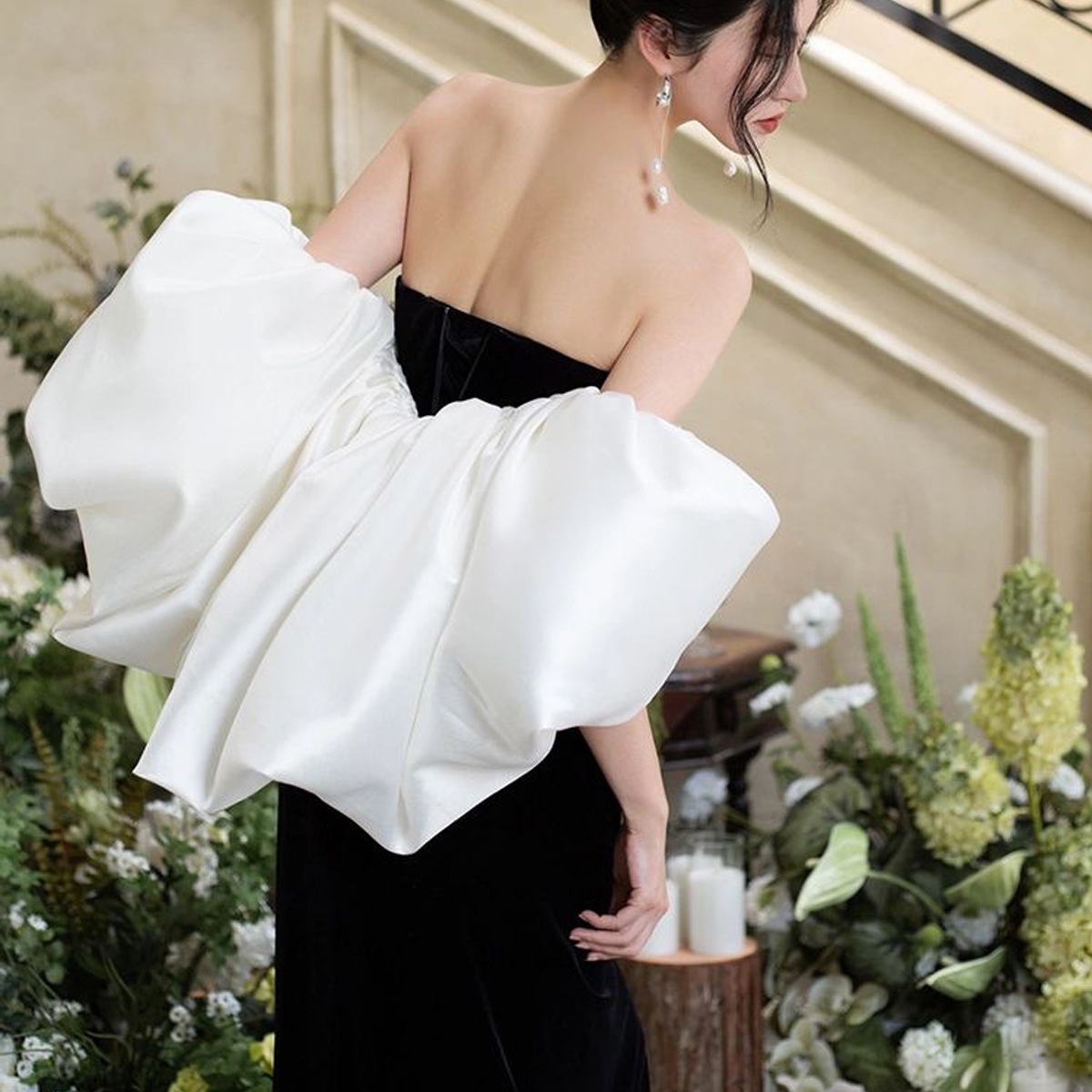 新品軽豪華個性白サテンショール泡袖宴会パーティードレスアクセサリーブラック高級160