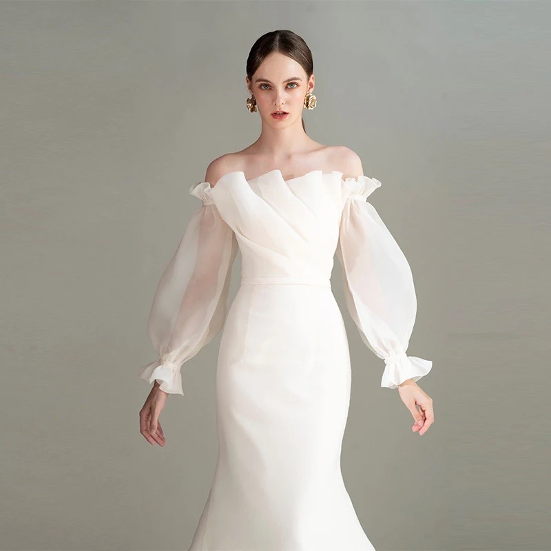 花嫁ウェディングドレス雪紡織腕袖灯籠袖婦人ドレスアクセサリー対外貿易卸売りV170