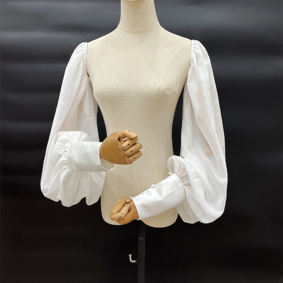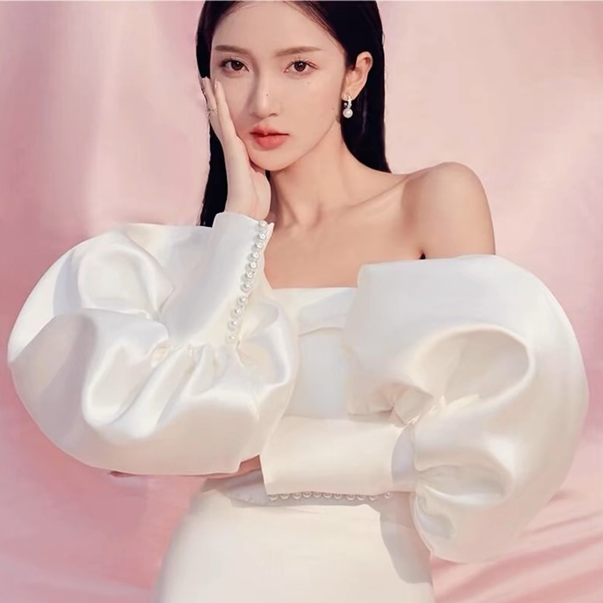 新しい結婚式の花嫁の手袋のウェディングドレスの写真撮影の写真のサテンのベルベットの泡の袖の白い長袖