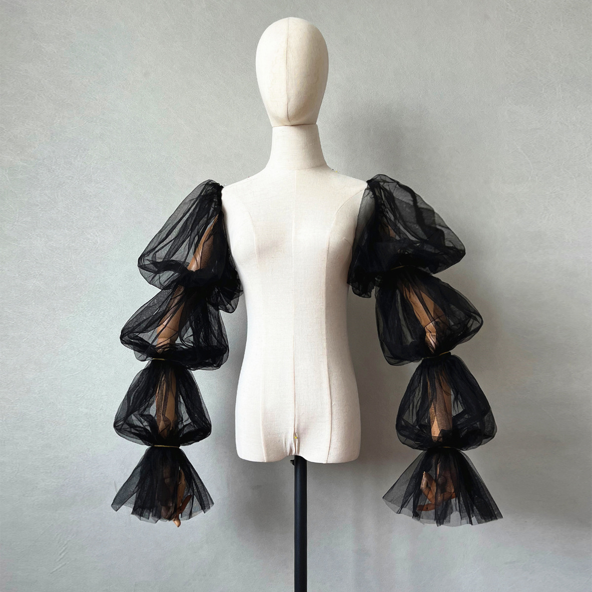 花嫁のウェディングドレスのコスプレの部品の泡の袖の百合は腕の欧根の紗の仙気のV142を遮ります。