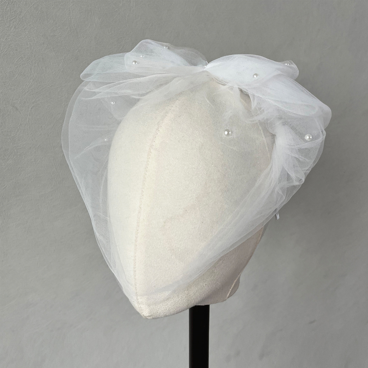 日韓の白い蝶結びの網の糸のカチューシャの真珠のシンプルな顔の飾りの結婚式の写真の髪飾りv41