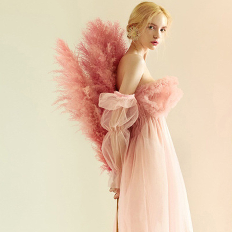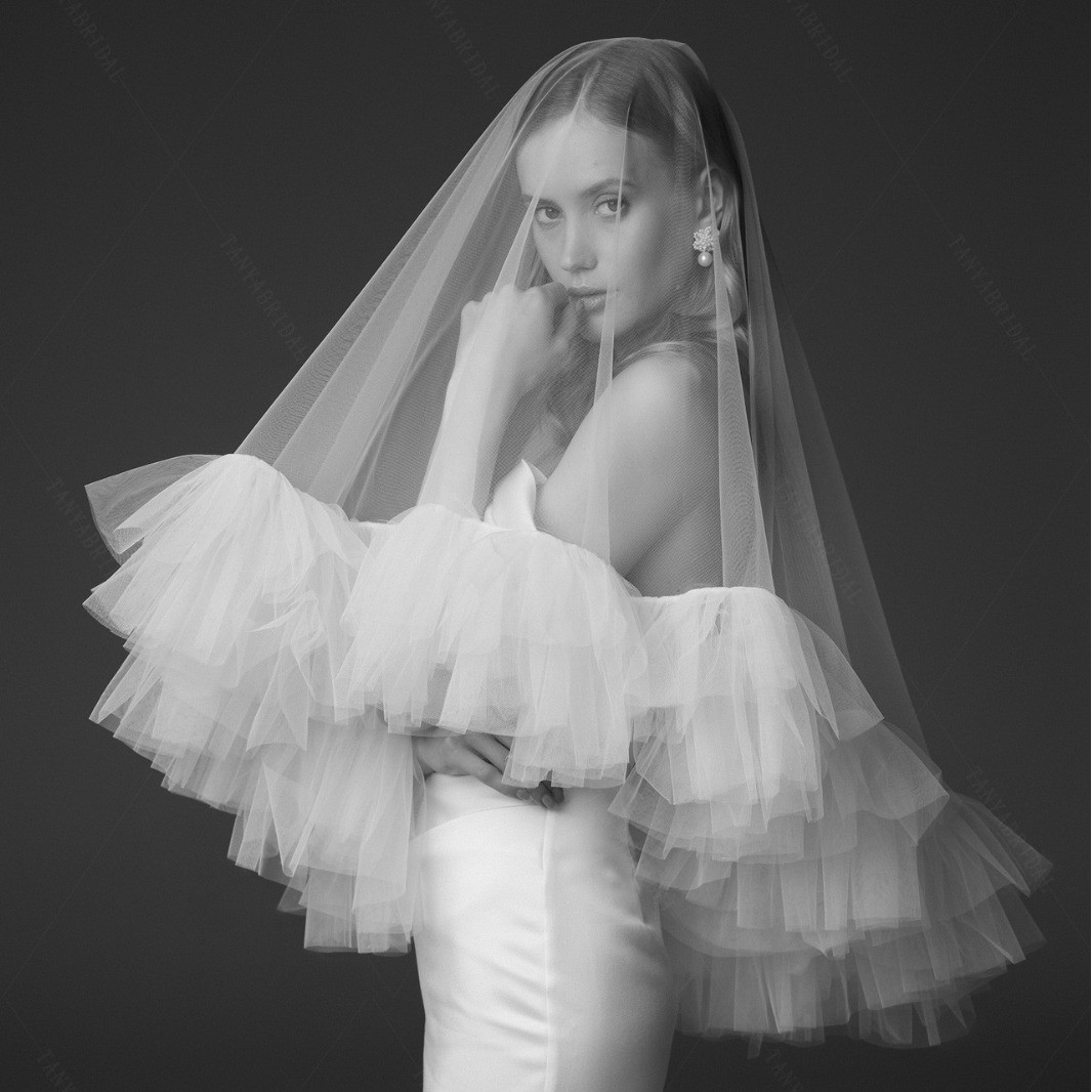 ウェディングドレスの袖の百シワのラッパの袖の長さの網の紗の形の撮影の影楼の写真は撮影します。
