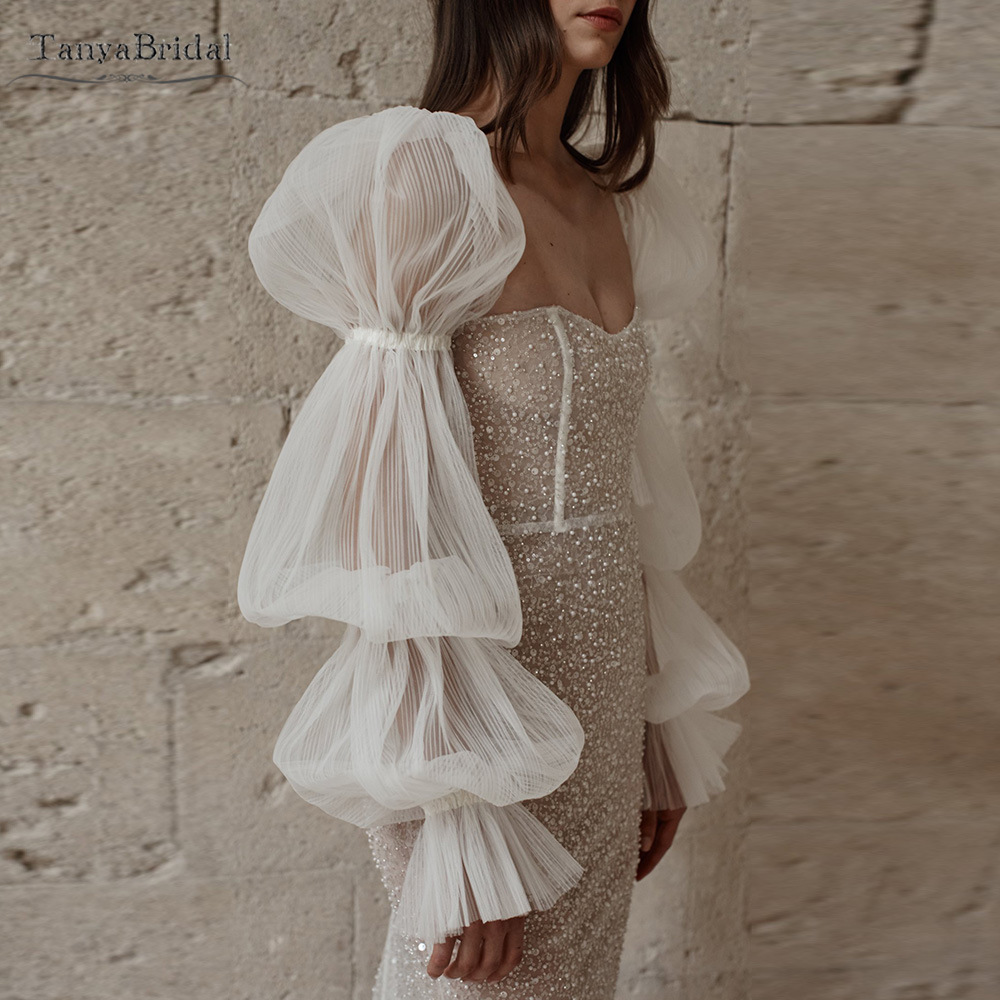 春の夏の花嫁の網の袖の日焼け止めの装飾の袖のゆったりしたデザインのラッパの袖の頭飾りのウェディングドレスの装飾v57