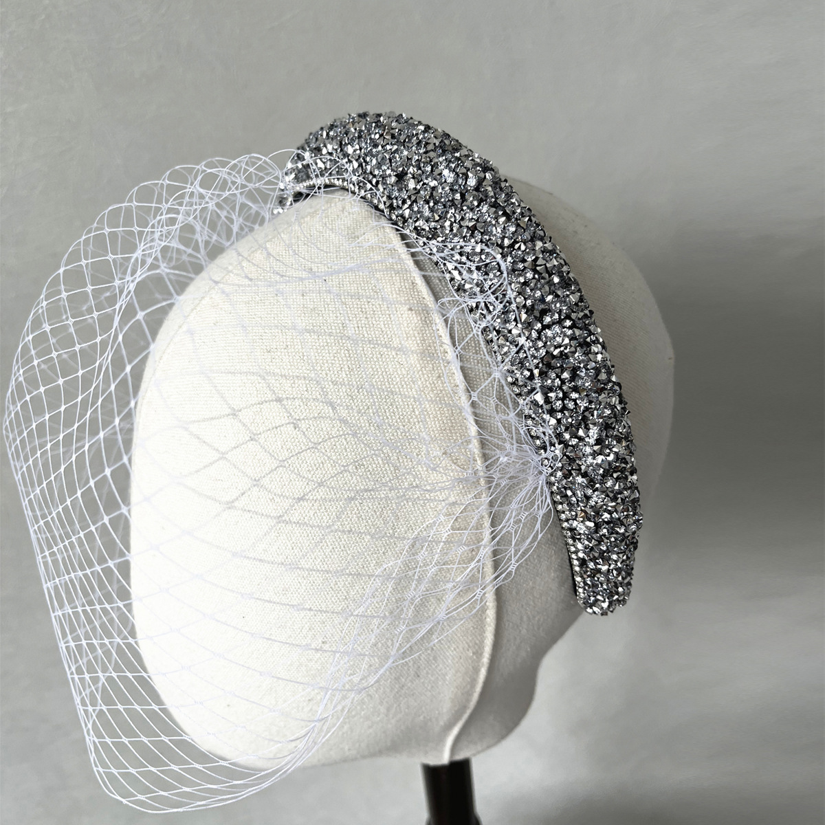 欧米の白黒のドリルの網の糸のシンプルなカチューシャはベールの頭を遮ります。