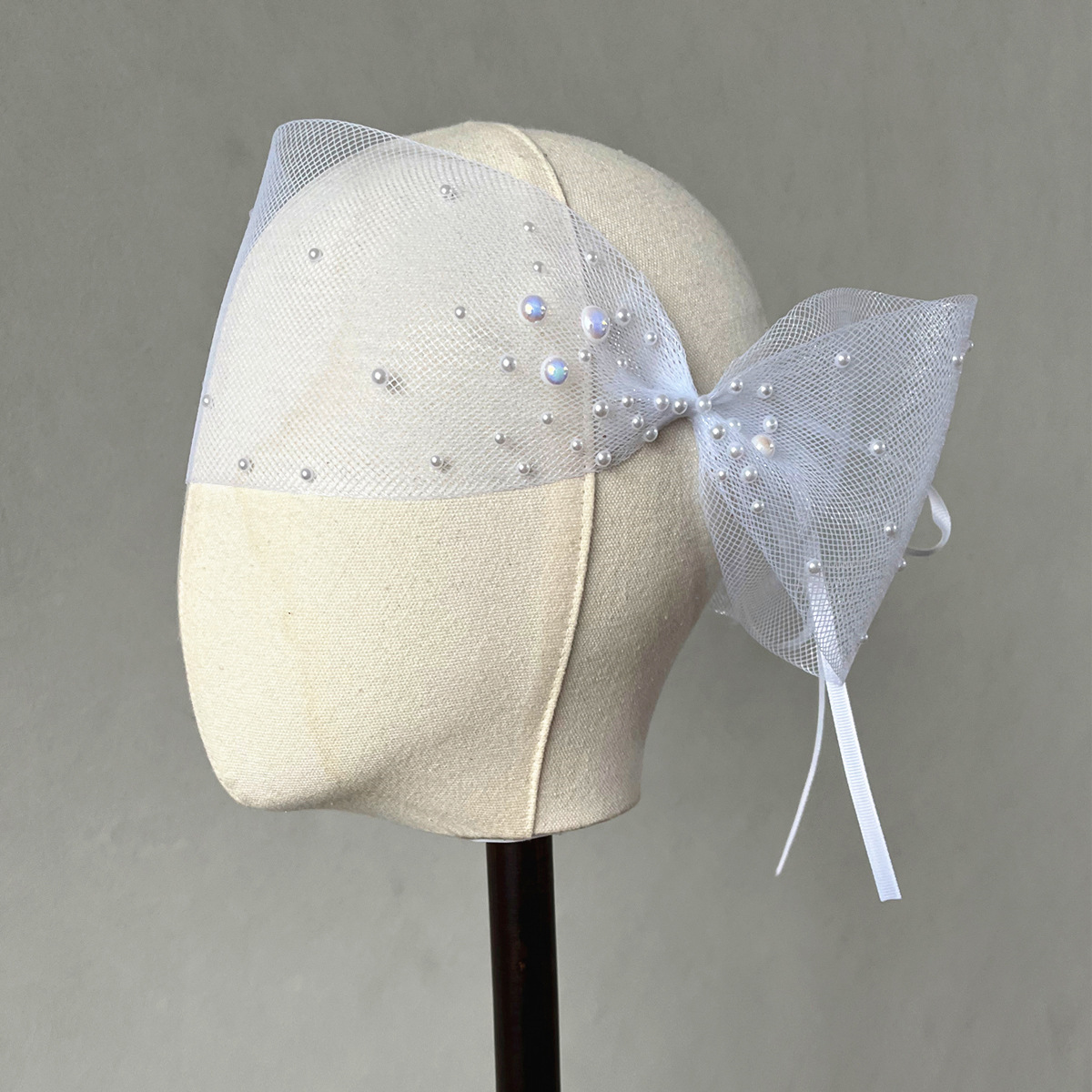 日韓の白い蝶結びの硬い網の糸の真珠は簡単に顔を隠します。