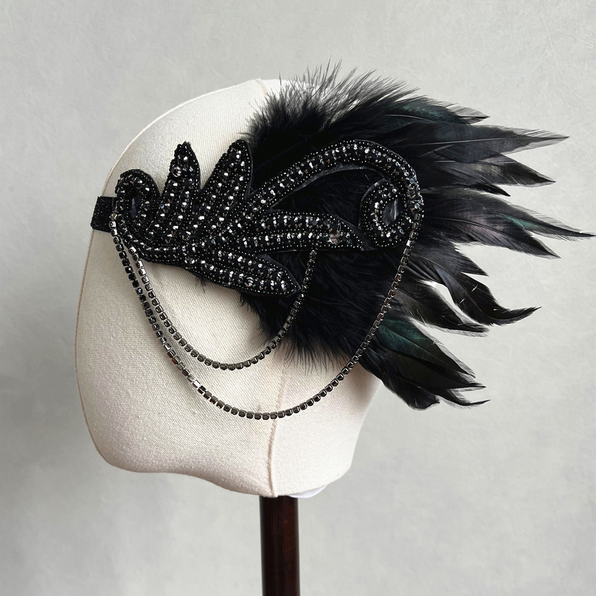 欧米の黒い羽の合金のヘアバンドの化粧の舞踏会の装飾のパーティーは服装の個性の新型のv32を演じます。