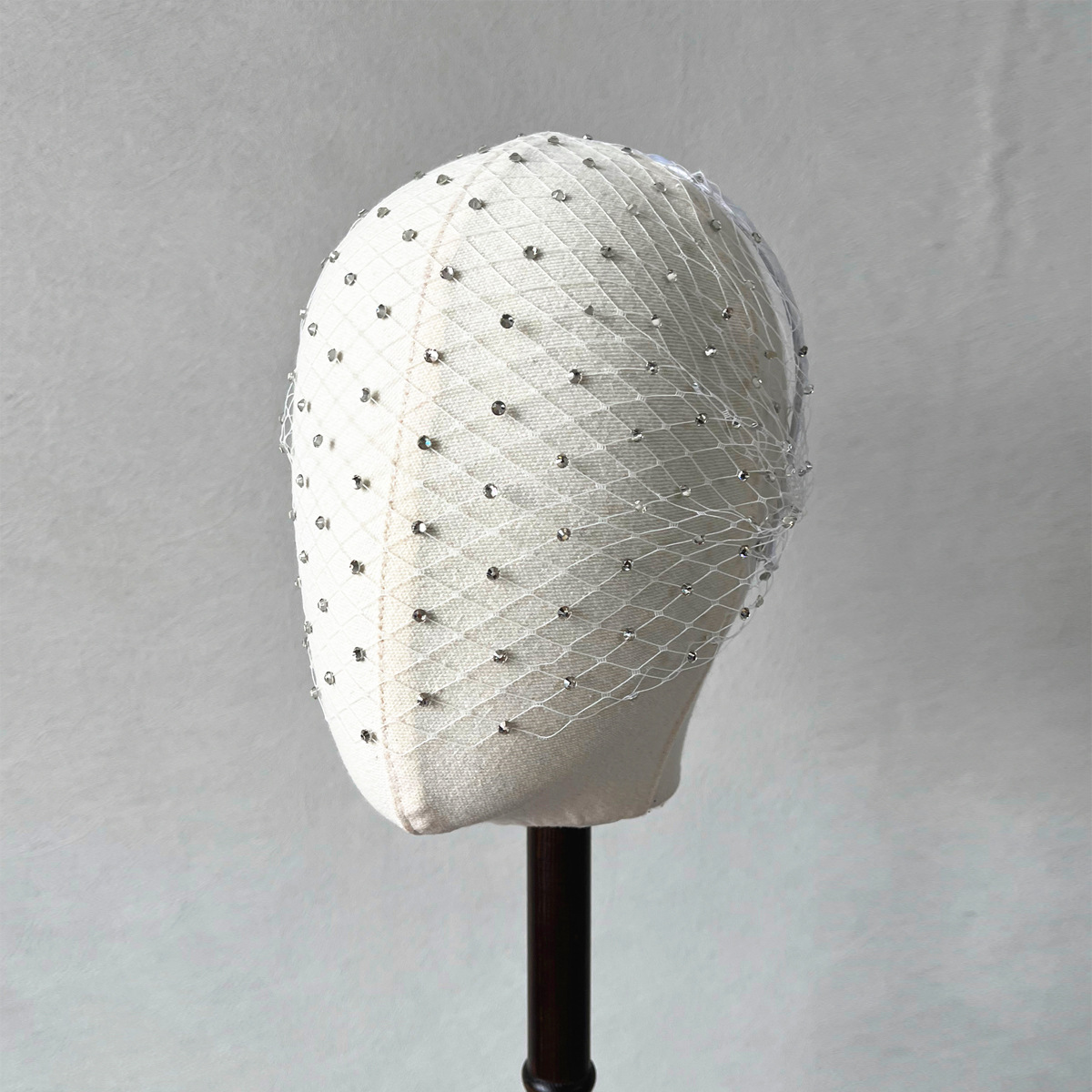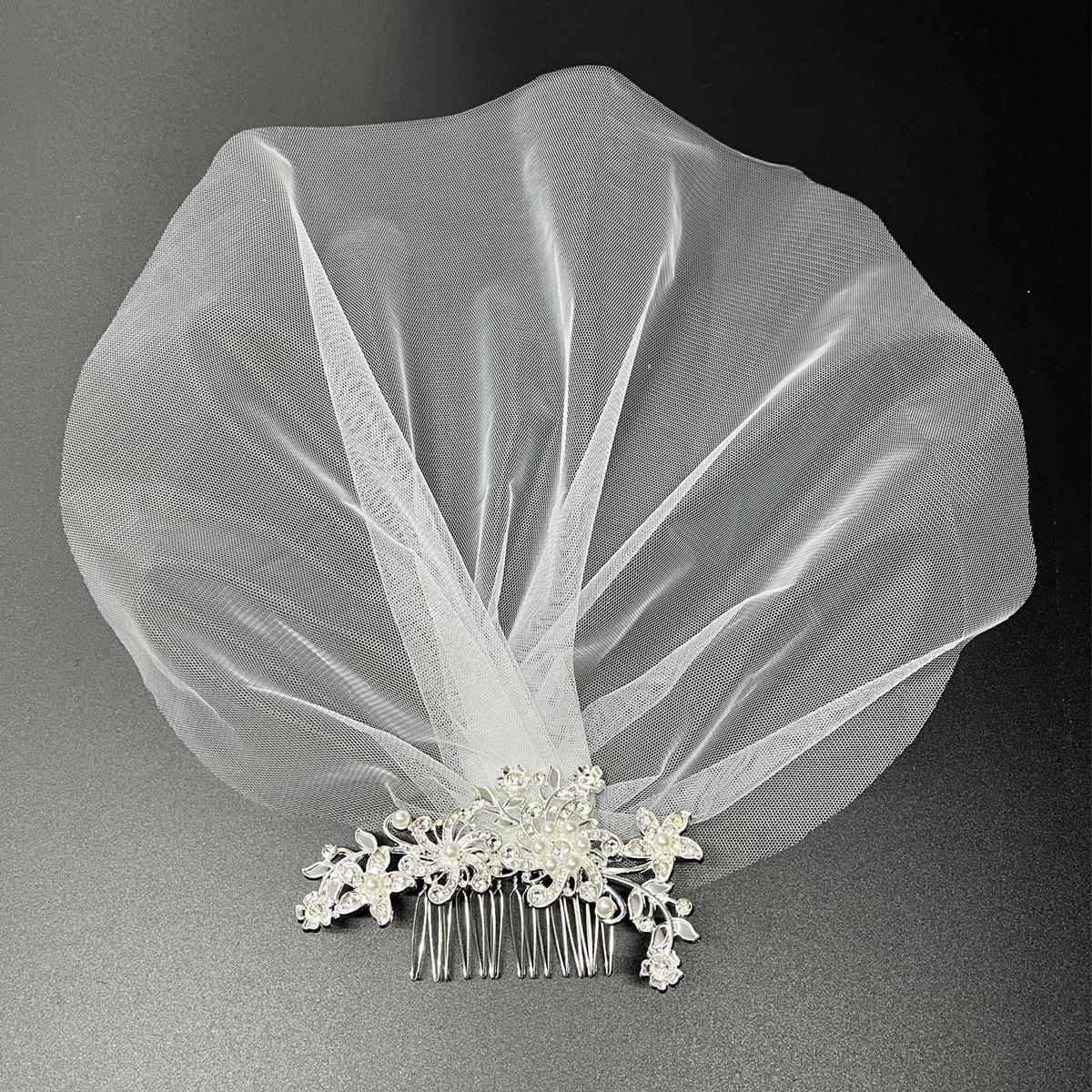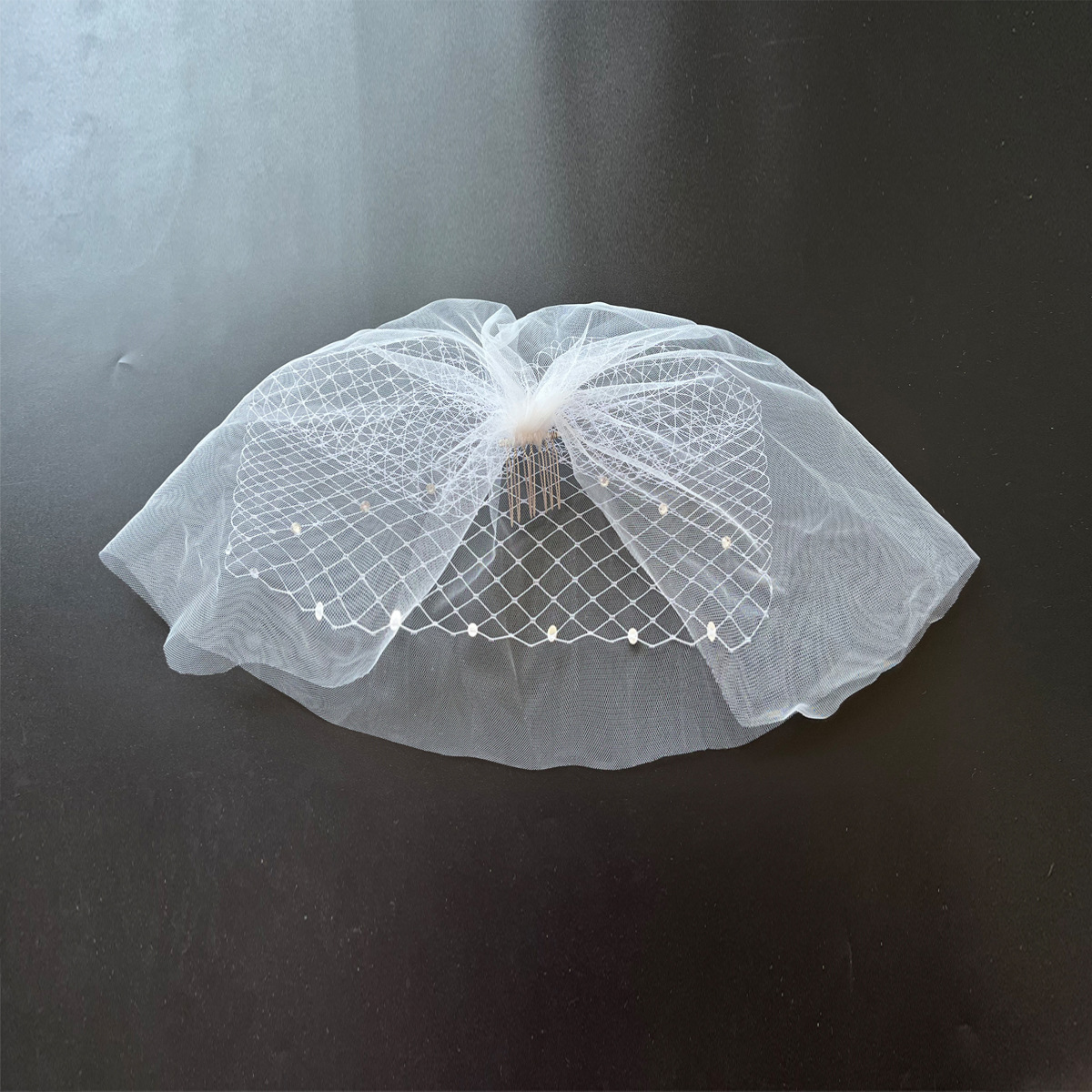 欧米の日韓の白い網のベールの髪は真珠のドリルを結って顔の網の糸の頭を覆います花嫁の写真の髪飾りv 40