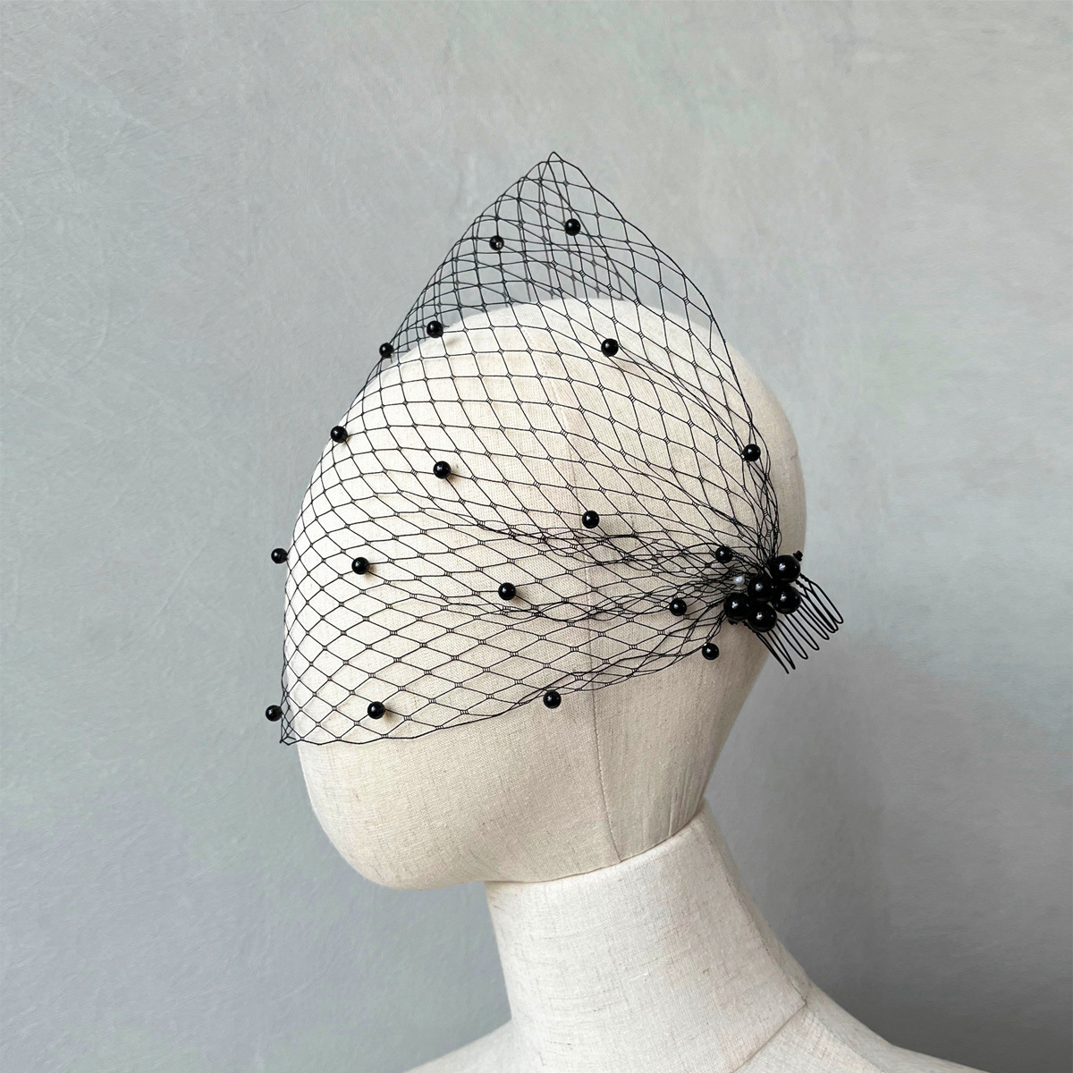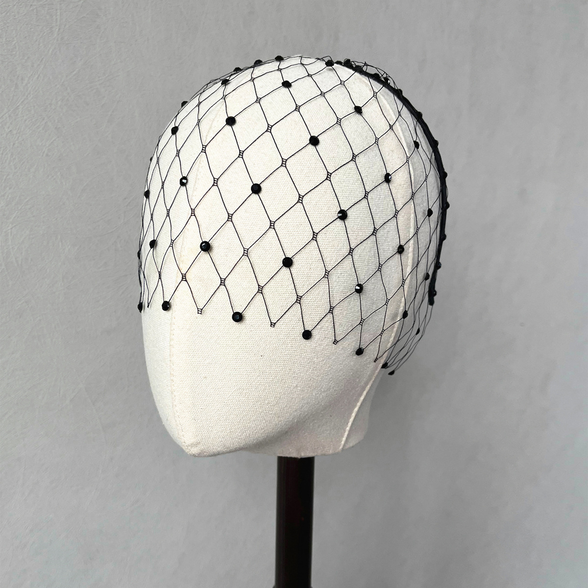 欧米の黒い雲のカチューシャのベールの透かし彫りの網の糸の頭飾りの舞踏会の写真の撮影の舞踏会の生放送はv34を飾ります。