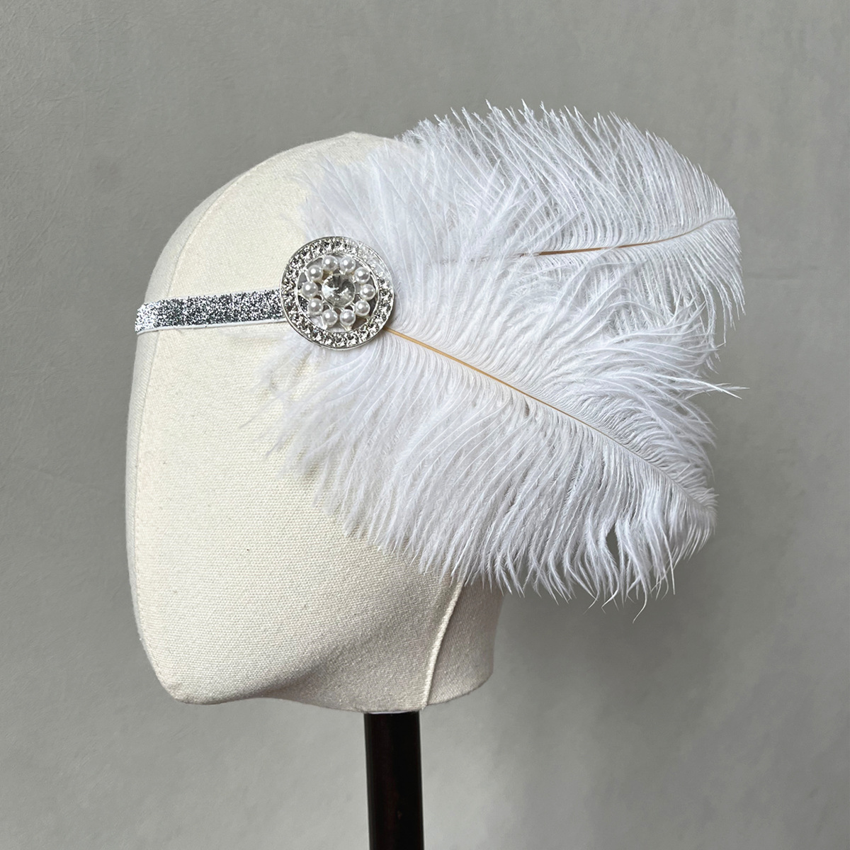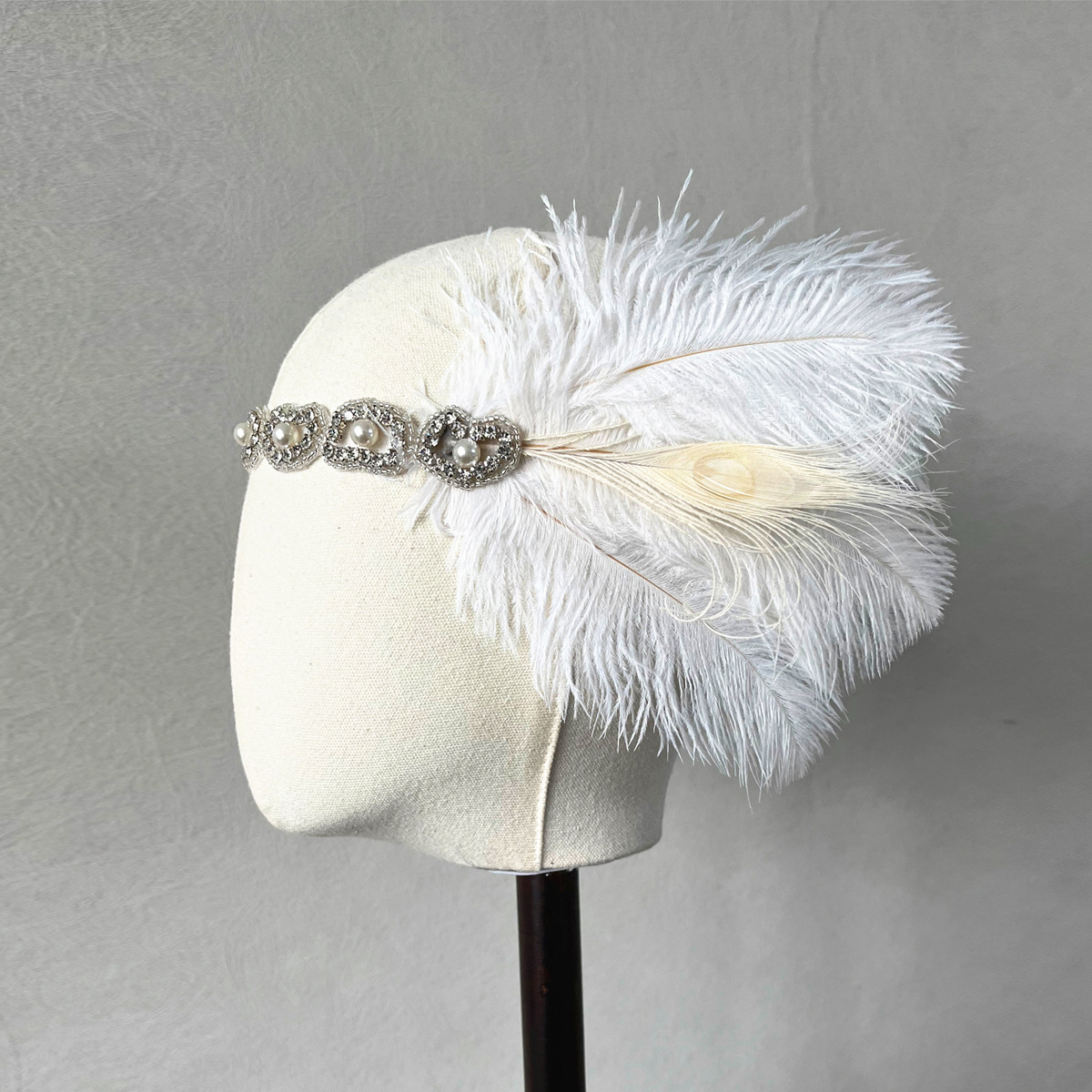 外国貿易の白い羽の真珠のパーティーの髪飾りはレトロなドレスを持っています。