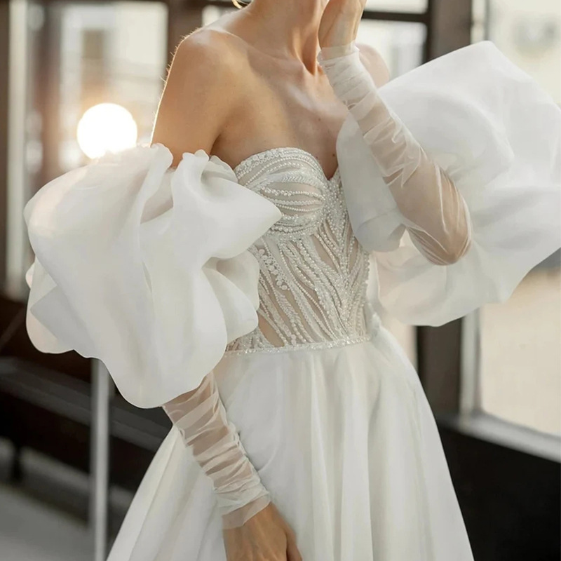 花嫁の結婚袖の対外貿易欧根紗は腕を取り外して袖を遮ることができます。