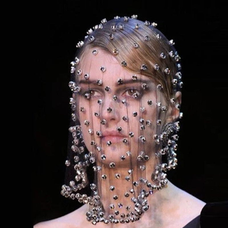 欧米の日韓の白い鳥かごのベールのカチューシャの優雅なアップリケの玉の網の糸の飾りのダイヤモンドの髪飾りの撮影の配合