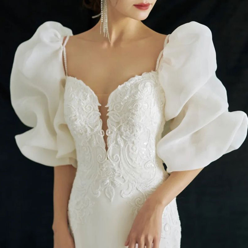 花嫁のウェディングドレスの袖カバーの欧根紗の泡の袖の短いタイプは胸の袖なしのウェディングドレスの部品を拭きます。
