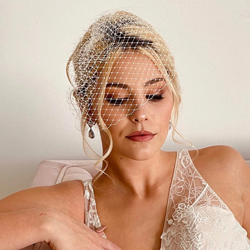 速売通欧米のシンプルな白いドリル鳥かごのベールは優雅で黒い顔のベールを隠して撮影します。