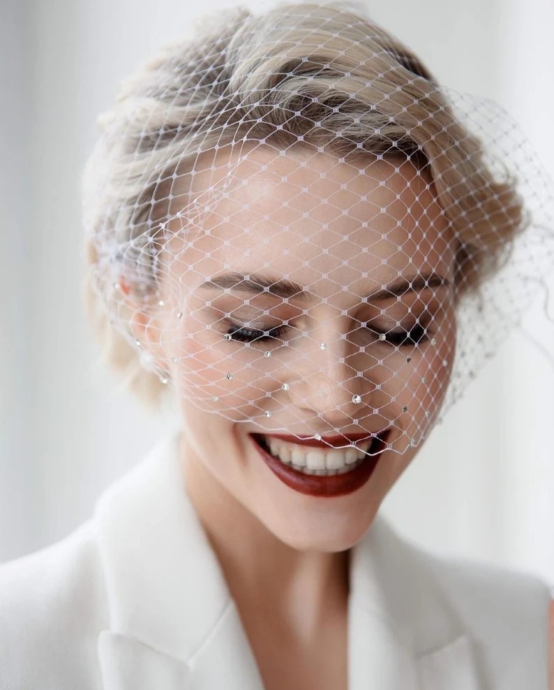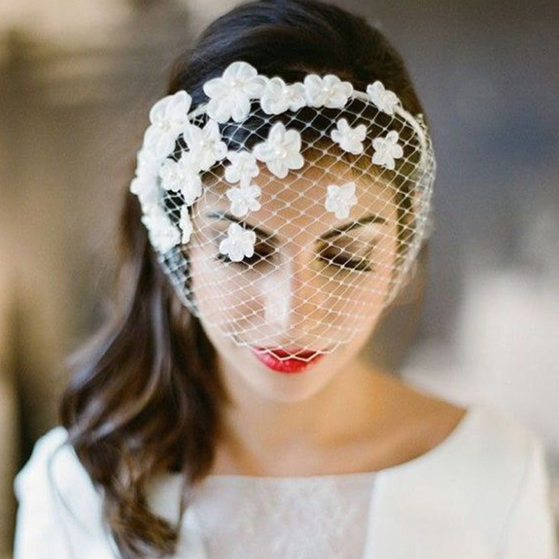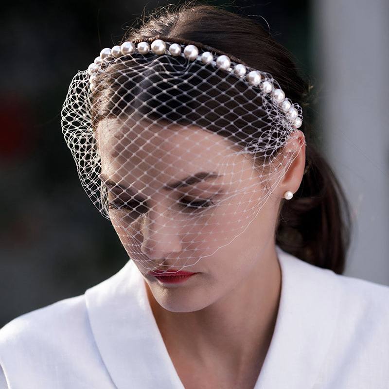 アマゾンで発売された欧米のレトロなアップリケ鳥かごのベールの白いシンプルな撮影結婚式の髪飾り