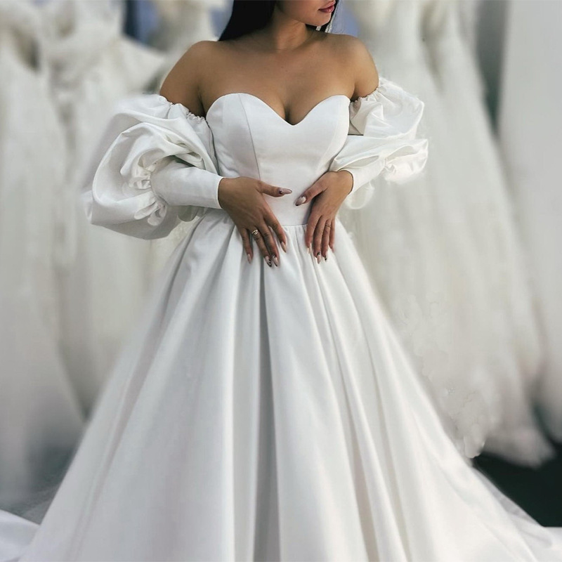 ウェディングドレスのサテンの泡袖の長袖の縫い目なしの胸の効果のウェディングドレスのアクセサリーは肉の袖を覆います。