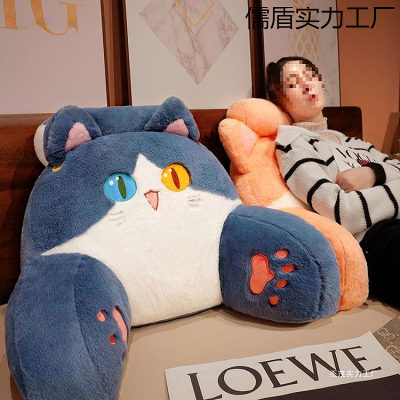 ベッドの上のクッションのソフトバッグは腰をかばって枕の大きい背もたれのソファーのベッドの上で背もたれの枕をかばって携帯電話の寮の学生の背もたれのクッションを遊びます。