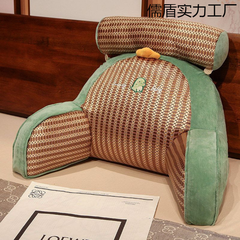 藤席のベッドの上のクッションのソフトバッグの大きい背もたれのソファーの寮の枕のベッドの上で本を読む学生は腰を保護して枕を支えます。