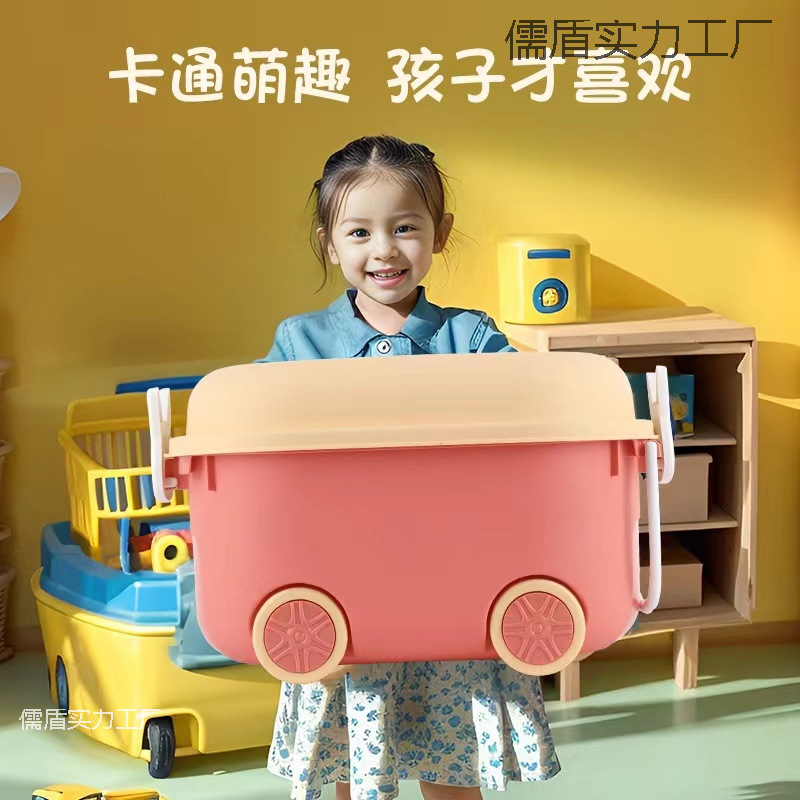 リトルイエローアヒルプラスチックおもちゃ収納ボックスホームベビー服スナック大容量収納ボックスビルディングブロックボックス滑車付き