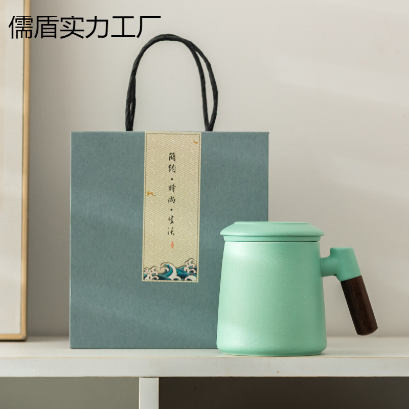 セラミックマグカップ茶水分離オフィスカップ大容量木柄蓋付きフィルター付きお茶カップお土産