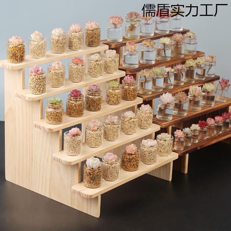 純実木展示棚収納棚デスクトップ潮手作り特盲箱人形多肉緑植階段棚