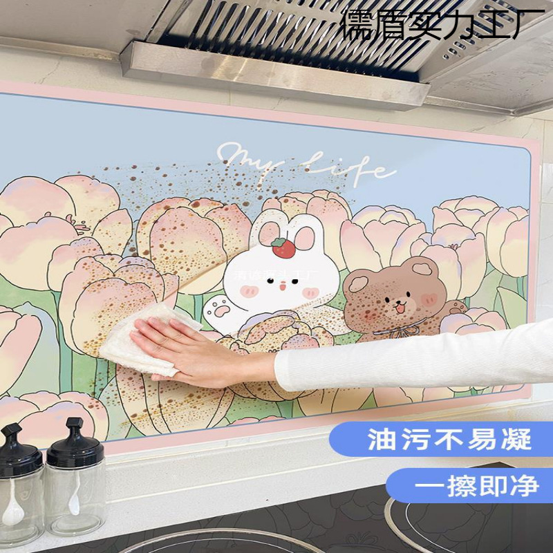 台所の防油シール防水自己接着防火耐高温防湿レンジフード用壁面フィルムクリーム風