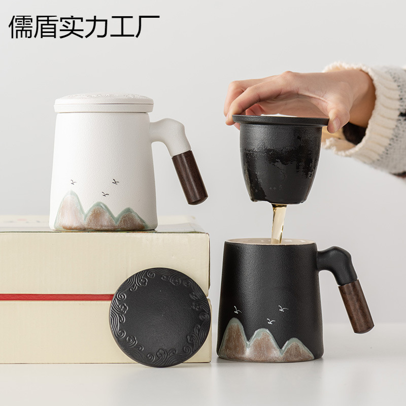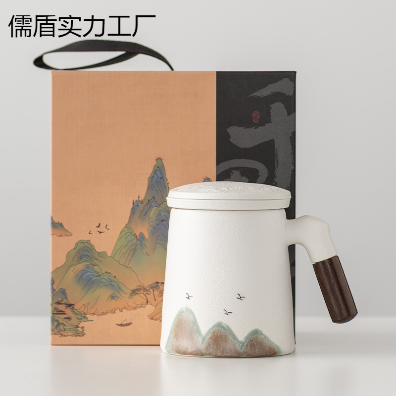 千里江山陶磁器ろ過内胆水杯国潮事務杯礼箱ビジネスマグカップ蓋付きプレゼントメーカー