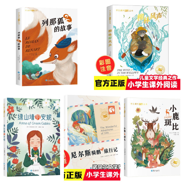 【全5冊】学生課外必読叢書一小鹿斑比 + 柳林 + 列那狐 + アン + ガチョウ