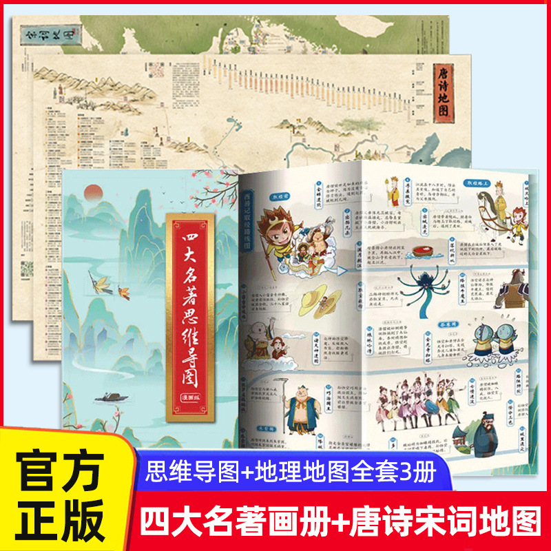 四大名著思惟ガイド絵本 + 唐詩宋詞地図掛け図小学生古詩詞漫画版は必ず暗記します。