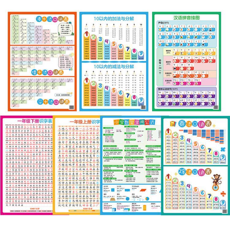 割り算の口訣表の壁に乗って小学生を貼って神器の二年生の数学の公式の教具の99を暗唱します。