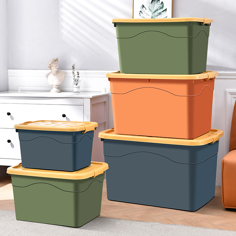 厚いプラスチック収納ボックスは家庭用引っ越し整理箱に収納されています。