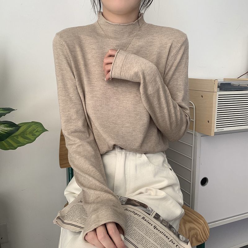 不規則な半高襟のニットの底のシャツの女性の秋冬の高級感の気質は身を修めて痩せています。