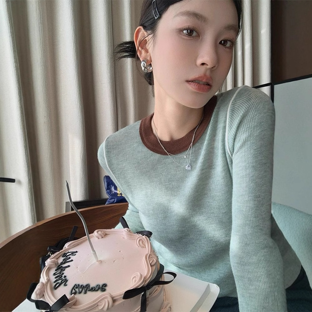 高級感のある色のつなぎ合わせのニットの底のシャツの女性の秋冬の修身はやせて怠惰な風の中でセーターの長袖の上着を掛けます。