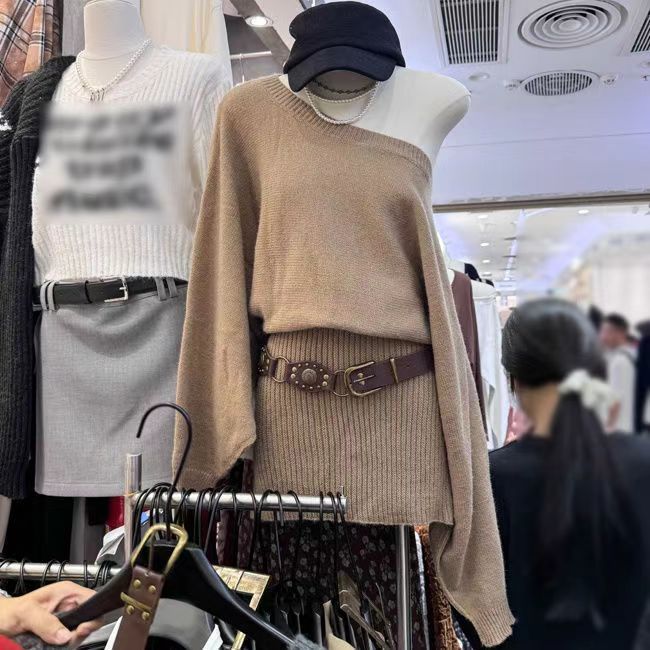 純欲風一字肩ニット女性秋冬高級感インナープルオーバー